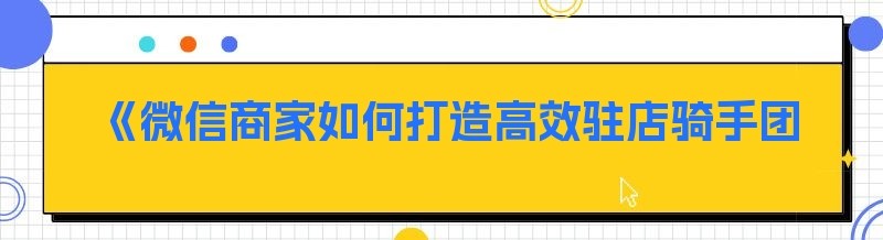 《微信商家如何打造高效驻店骑手团队:实操秘籍大公开》