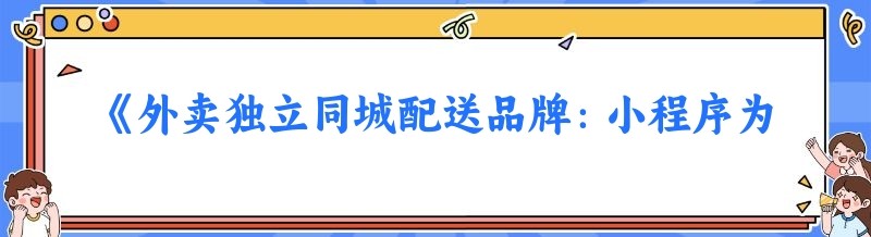 《外卖独立同城配送品牌:小程序为何成为首选?》