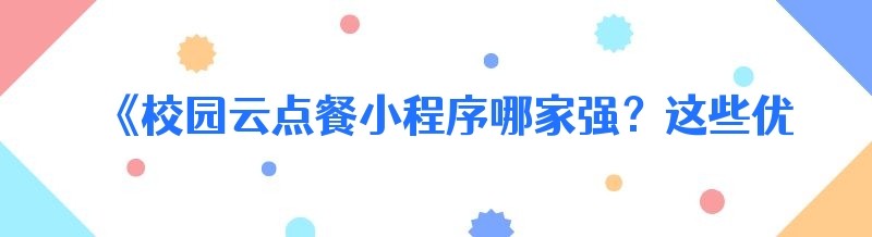 《校园云点餐小程序哪家强?这些优势你知道吗?》