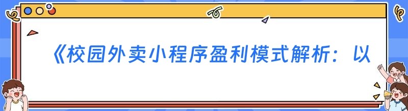 《校园外卖小程序盈利模式解析:以类似美团的模式为例》
