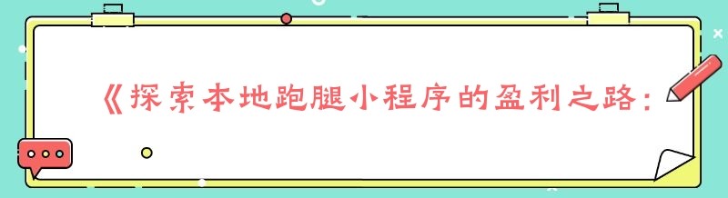《探索本地跑腿小程序的盈利之路:像达达一样成功并非遥不可及》