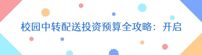 校园中转配送投资预算全攻略:开启财富新机遇