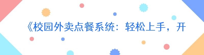 《校园外卖点餐系统:轻松上手,开启便捷校园生活》