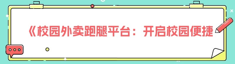 编辑 《校园外卖跑腿平台:开启校园便捷生活新时代》
