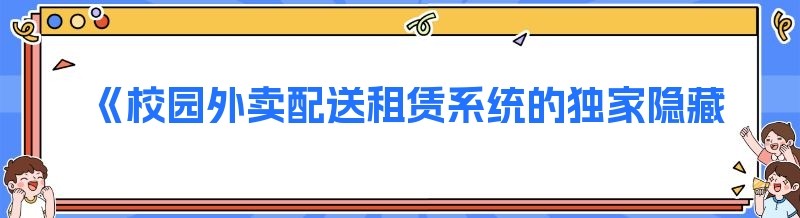 《校园外卖配送租赁系统的独家隐藏技巧大揭秘》