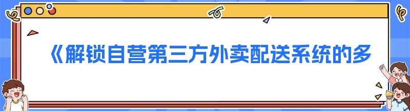 《解锁自营第三方外卖配送系统的多元玩法,你只知道一种可不行!》