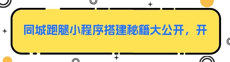 同城跑腿小程序搭建秘籍大公开,开启财富新征程