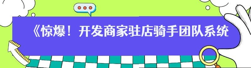 《惊爆!开发商家驻店骑手团队系统平台的费用大揭秘》