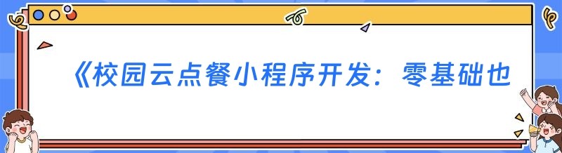 《校园云点餐小程序开发:零基础也能轻松上手》