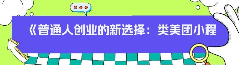 在创业的道路上,普通人往往面临着诸多挑战和困惑。资金有限、经验不足、市场竞争激烈等问题,让许多有创业梦想的人望而却步。然而,随着互联网技术的不断发展,一种新的创业模式——类美团小程序的校园平台,为普通人提供了一个轻松创业的机会。