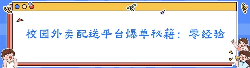 校园外卖配送平台爆单秘籍:零经验也能轻松上手