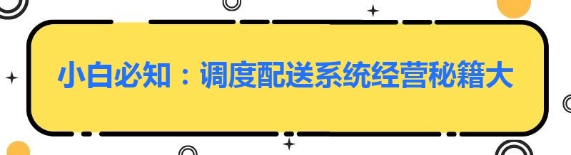 小白必知:调度配送系统经营秘籍大公开