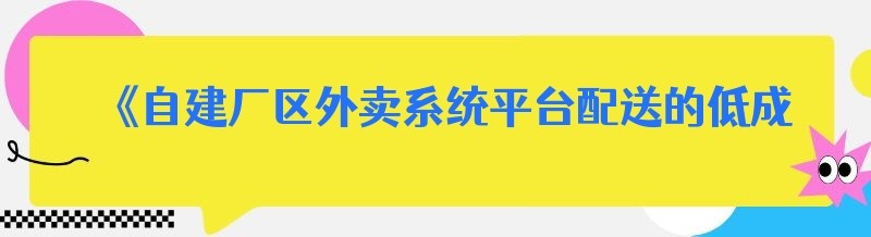 《自建厂区外卖系统平台配送的低成本攻略》