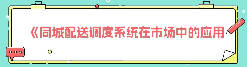 《同城配送调度系统在市场中的应用知识大揭秘》