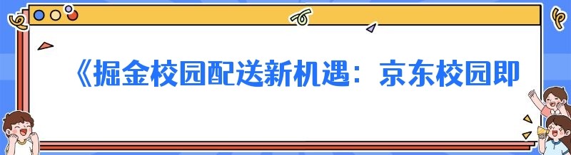 《掘金校园配送新机遇:京东校园即时配送小程序代理全攻略》