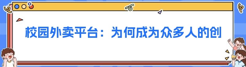 校园外卖平台:为何成为众多人的创业选择