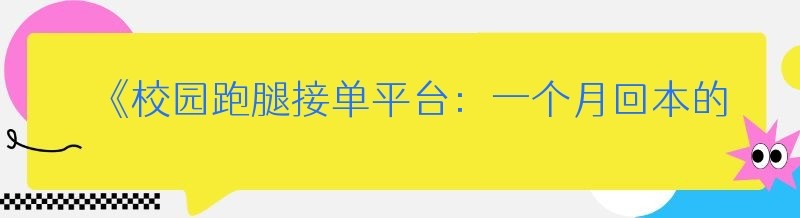 《校园跑腿接单平台:一个月回本的秘密与实现路径》