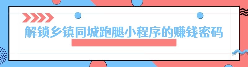 解锁乡镇同城跑腿小程序的赚钱密码:真的有那么难吗?