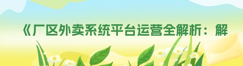 《厂区外卖系统平台运营全解析:解锁高效便捷的用餐新体验》