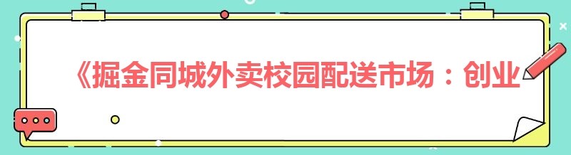 《掘金同城外卖校园配送市场:创业者的深度洞察与实战指南》