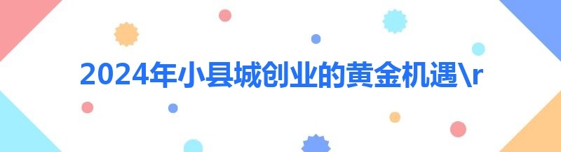 2024年小县城创业的黄金机遇