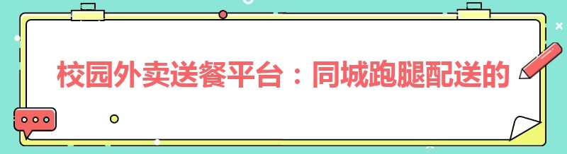 校园外卖送餐平台:同城跑腿配送的新蓝海
