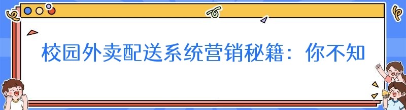 - 校园外卖配送推广秘籍:创业者的必备指南
