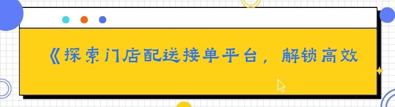 在如今竞争激烈的商业环境中,门店配送已成为许多商家提升服务质量、拓展市场份额的重要手段。然而,选择一个合适的接单平台却并非易事。不同的平台有着各自的特点和优势,如何根据自身需求进行选择,成为了众多商家关注的焦点。接下来,让我们一起深入了解门店配送接单平台的相关知识,帮助您做出明智的决策。