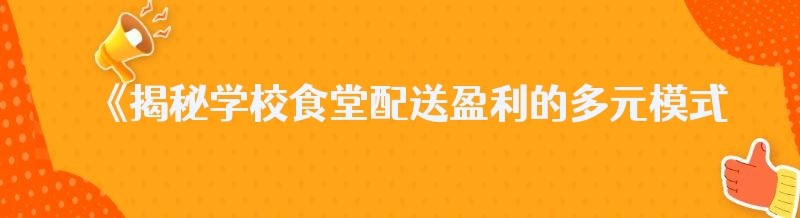 在众多商业领域中,学校食堂配送一直是备受关注的一个行业。许多人都对其盈利情况充满好奇,甚至有观点认为做学校食堂配送能盈利的方式很单一,只有那常见的一种。然而,事实真的如此吗?今天,就让我们深入探讨一下学校食堂配送的盈利模式,打破这种片面的认知。