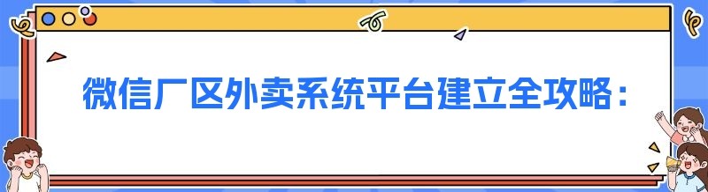 微信厂区外卖系统平台建立全攻略:开启便捷用餐新时代