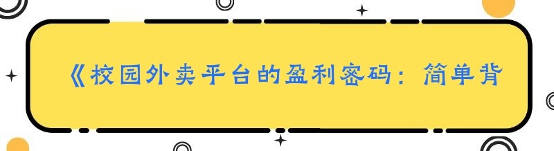 《校园外卖平台的盈利密码:简单背后的财富之道》