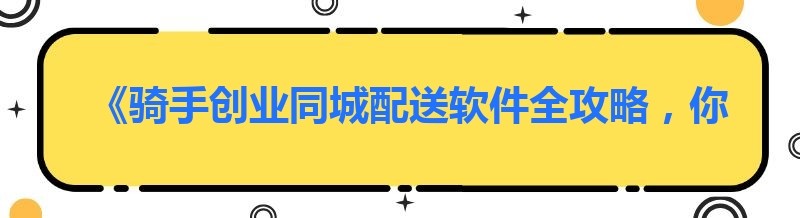 《骑手创业同城配送软件全攻略,你还不知道就out啦!》