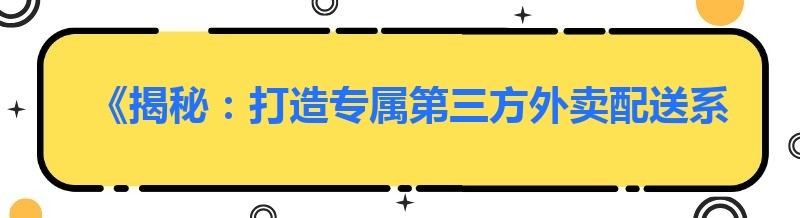 《揭秘:打造专属第三方外卖配送系统的成本全解析》