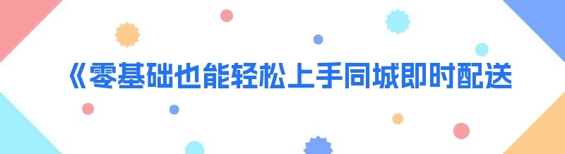 《零基础也能轻松上手同城即时配送系统定制开发!》