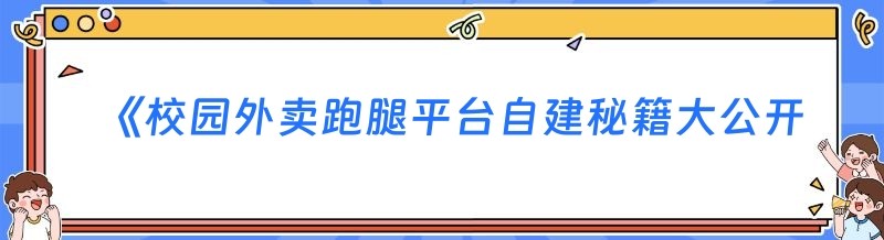 《校园外卖跑腿平台自建秘籍大公开》