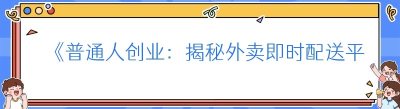 《普通人创业:揭秘外卖即时配送平台的盈利秘籍》