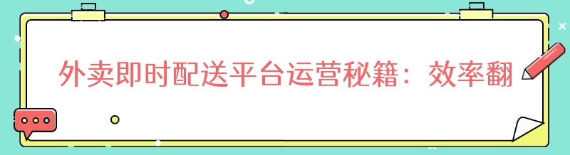 外卖即时配送平台运营秘籍:效率翻倍的关键要点
