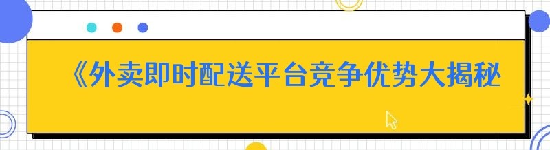 《外卖即时配送平台竞争优势大揭秘!这些关键点你必须知道》