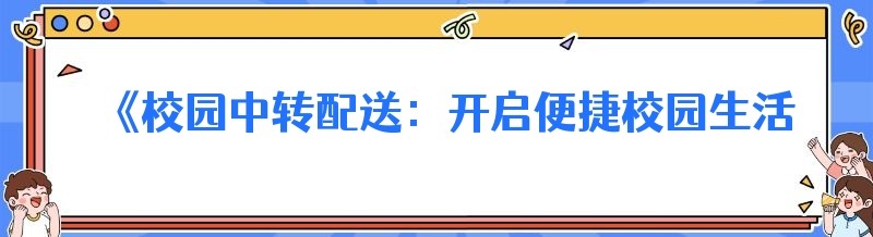 编辑 《校园中转配送:开启便捷校园生活新篇章》