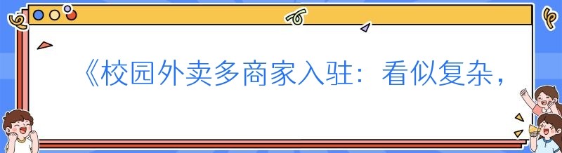 《校园外卖多商家入驻:看似复杂,实则大有可为》