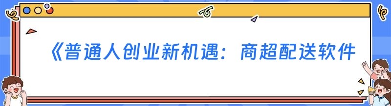 《普通人创业新机遇:商超配送软件助力新手轻松启航》