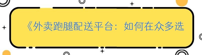 《外卖跑腿配送平台:如何在众多选择中脱颖而出》