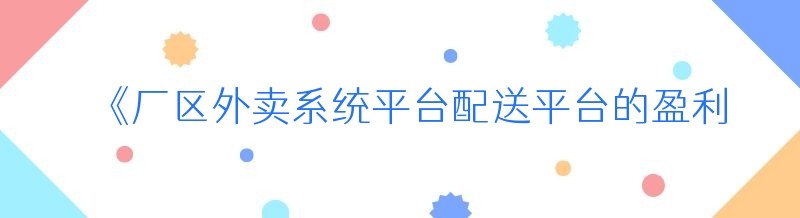 《厂区外卖系统平台配送平台的盈利秘籍》