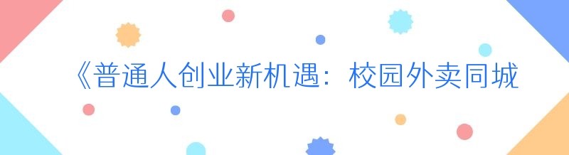 《普通人创业新机遇:校园外卖同城生活系统,开启轻松创业之旅》