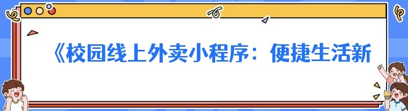 《校园线上外卖小程序:便捷生活新选择,你买对了吗?》