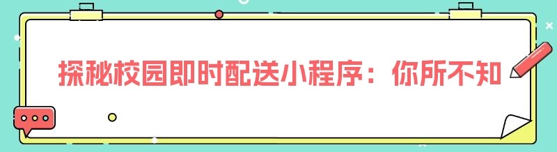 探秘校园即时配送小程序:你所不知道的那些事儿