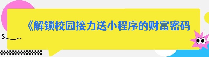《解锁校园接力送小程序的财富密码:成本大揭秘》