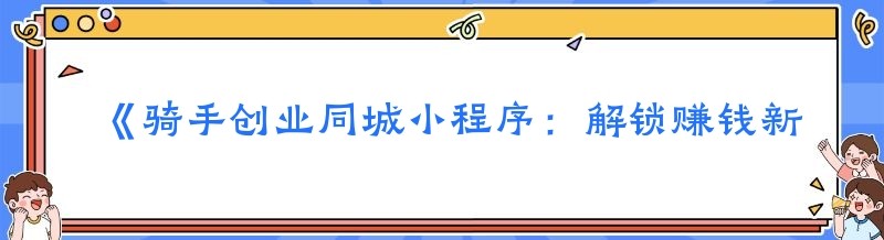 编辑 《骑手创业同城小程序:解锁赚钱新姿势,压箱底技巧大揭秘》
