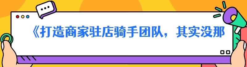 《打造商家驻店骑手团队,其实没那么难!》