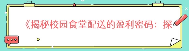 《揭秘校园食堂配送的盈利密码:探索最新模式与机遇》